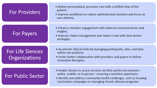 Whether you're a provider, payer, or life sciences organization, Salesforce Health Cloud offers the tools you need to meet today’s healthcare challenges and thrive in a patient-centric future.