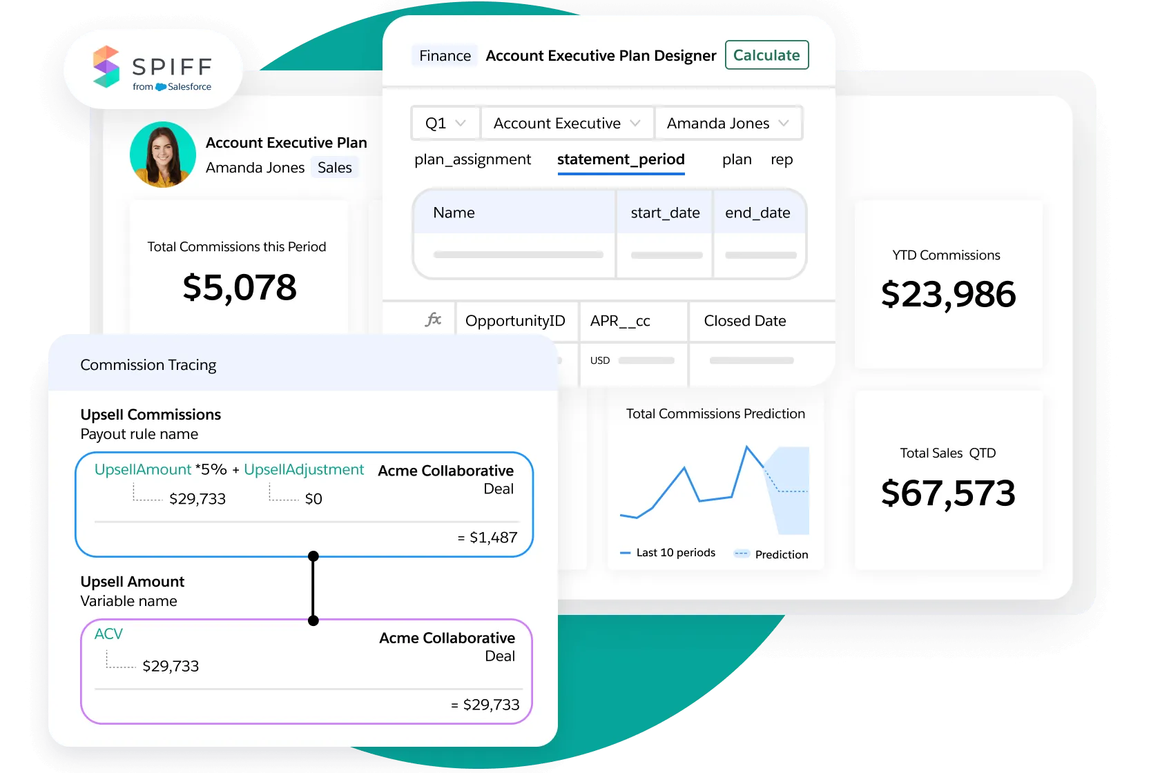 Salesforce Spiff embeds incentive compensation management directly within Sales Cloud, so users never leave their familiar CRM environment. Its low-code builder empowers sales operations to configure complex commission plans—tiers, accelerators, splits, and overrides—using intuitive drag-and-drop tools. Visual rule validation flags conflicts before activation, and reusable templates ensure consistency across teams and regions.